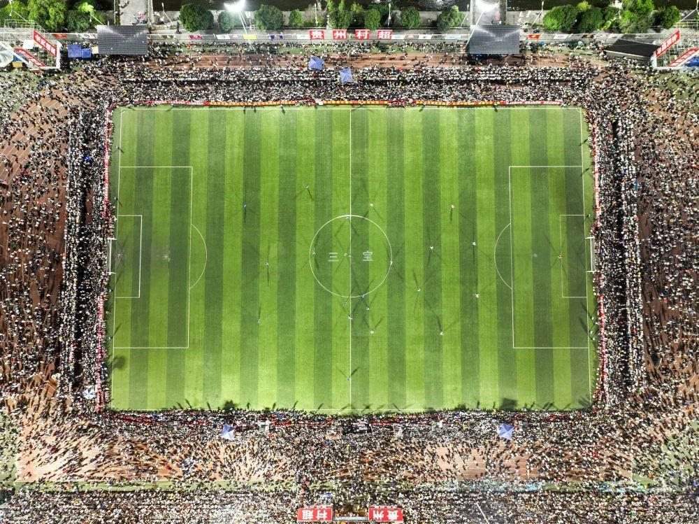 △2023年7月29日,夜幕下的“村超”總決賽現(xiàn)場。