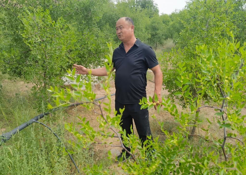 “除了防沙治沙,還得兼顧經(jīng)濟效益?!蓖瓿赊r(nóng)田防護林帶建設后,任二換帶領鄉(xiāng)親們在砂石灘上種起酸棗等經(jīng)濟樹種。