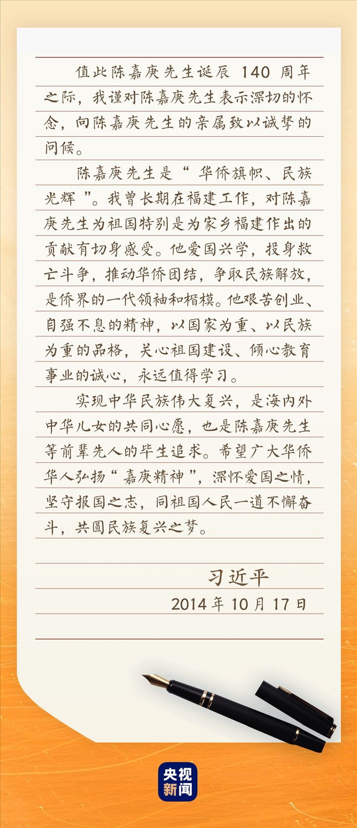 2014年10月21日,福建廈門。紀(jì)念陳嘉庚誕辰140周年座談會(huì)現(xiàn)場(chǎng),雷鳴般的掌聲經(jīng)久不息。習(xí)近平總書(shū)記的回信,讓大家激動(dòng)不已——