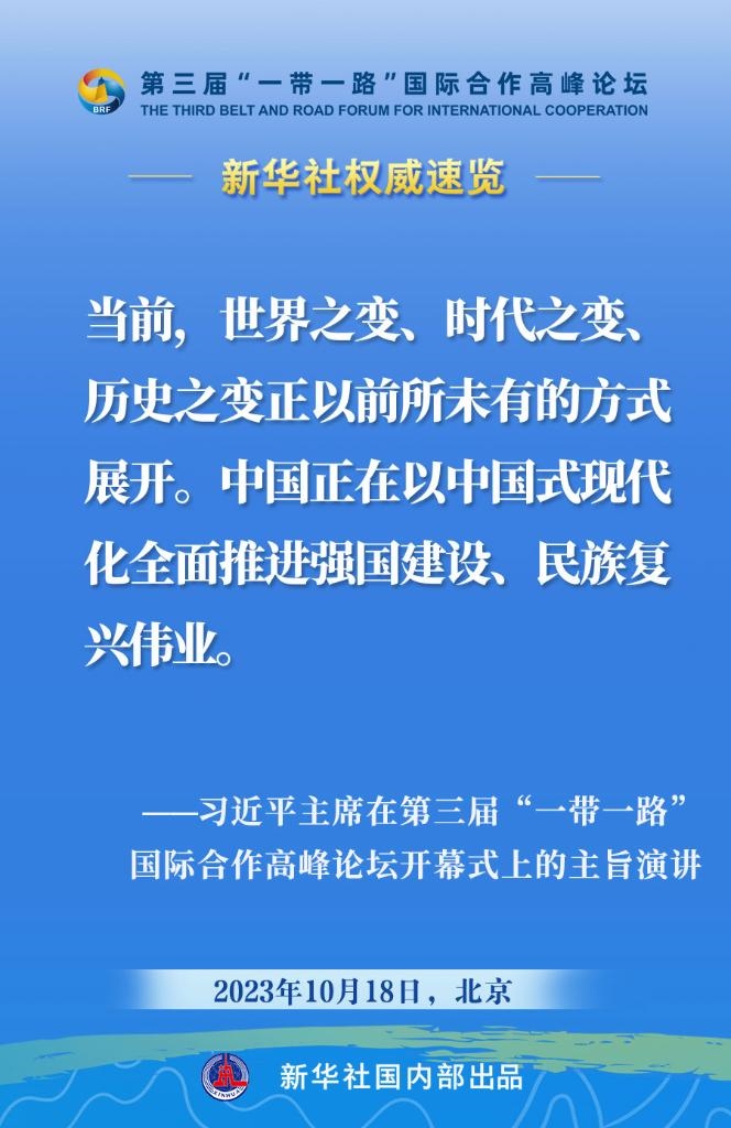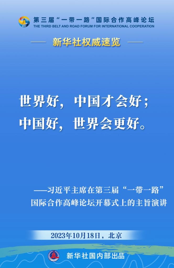 10月18日,國(guó)家主席習(xí)近平在第三屆“一帶一路”國(guó)際合作高峰論壇開(kāi)幕式上發(fā)表主旨演講。一起來(lái)看金句?! ?/p>
