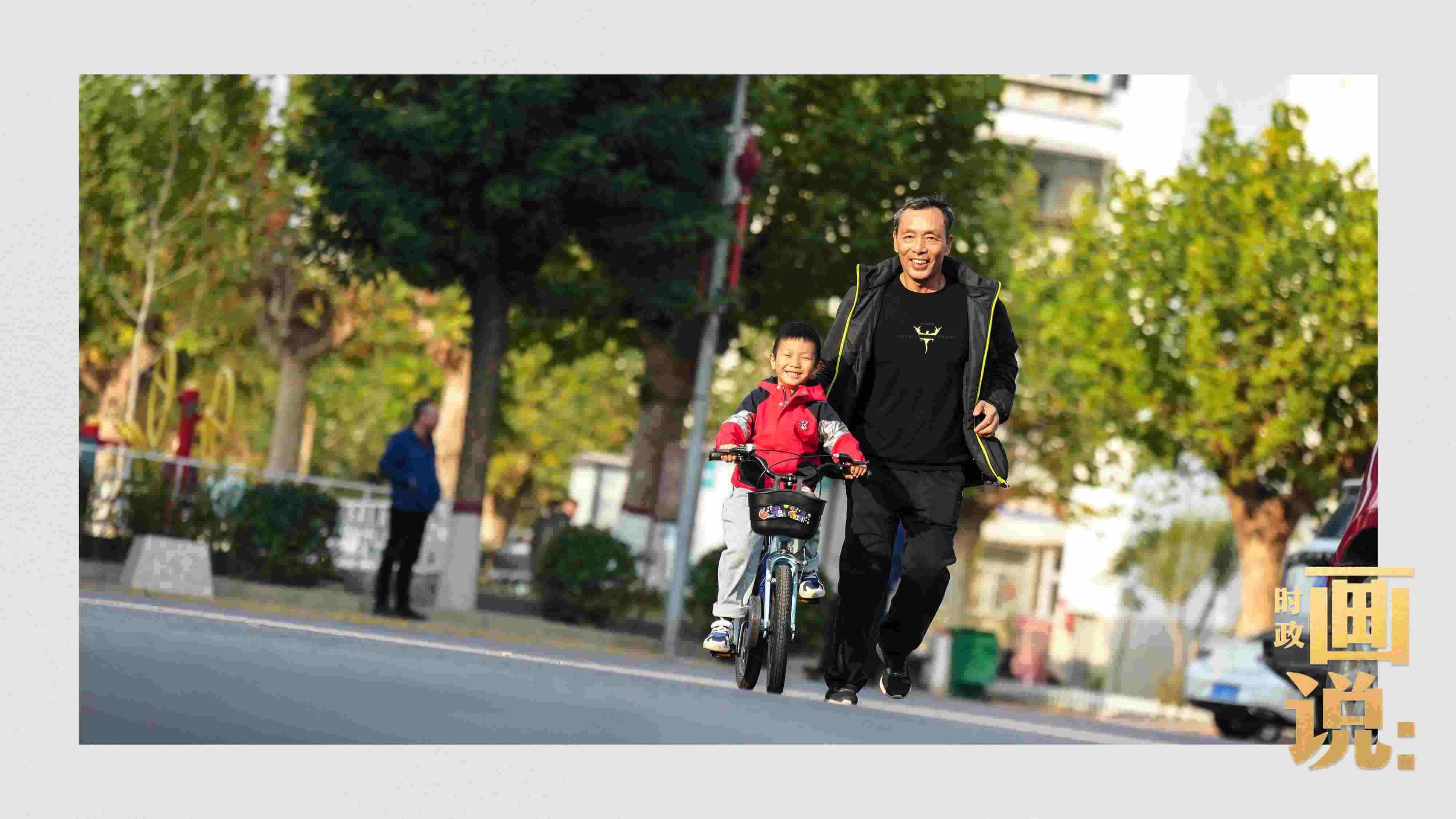 △學(xué)騎自行車的爺孫倆其樂(lè)融融。冬日的暖陽(yáng)留在身上,會(huì)心的笑容掛在臉上。永濟(jì)秀園小區(qū),涿州。