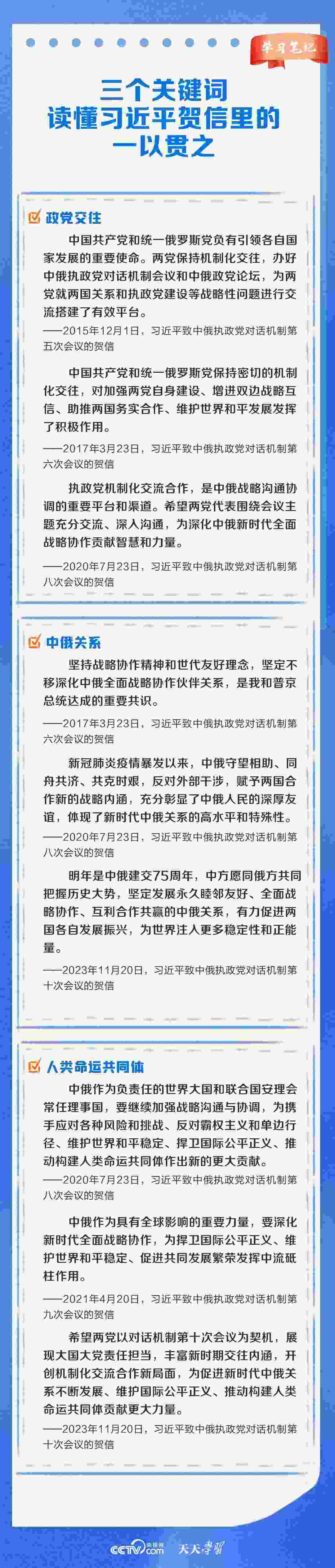 11月20日,中俄執(zhí)政黨對話機(jī)制第十次會(huì)議以視頻方式舉辦。習(xí)近平總書記同普京總統(tǒng)分別向會(huì)議致賀信。習(xí)近平總書記在賀信中強(qiáng)調(diào),中俄執(zhí)政黨對話機(jī)制已發(fā)展成為兩國鞏固政治互信、密切戰(zhàn)略協(xié)作、推進(jìn)互利合作的獨(dú)特渠道和平臺(tái)。
