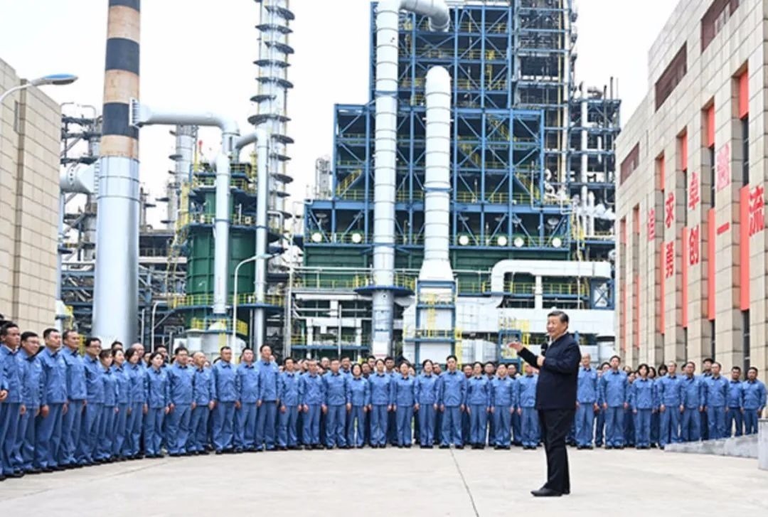 △2023年10月10日,習(xí)近平總書記在江西中國石化九江分公司考察時,同企業(yè)員工親切交流。