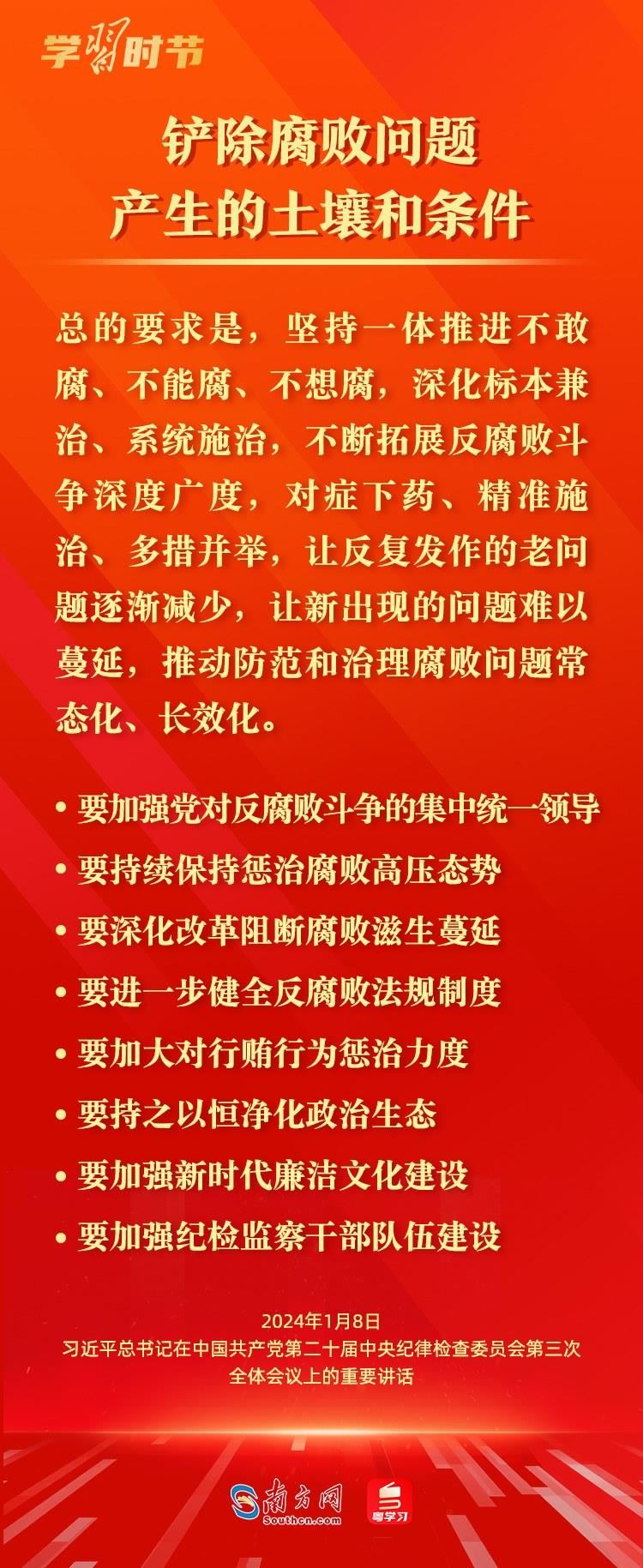 1月8日,中共中央總書記、國家主席、中央軍委主席習近平在中國共產黨第二十屆中央紀律檢查委員會第三次全體會議上發(fā)表重要講話,深刻闡述黨的自我革命的重要思想,對持續(xù)發(fā)力、縱深推進反腐敗斗爭作出戰(zhàn)略部署。
