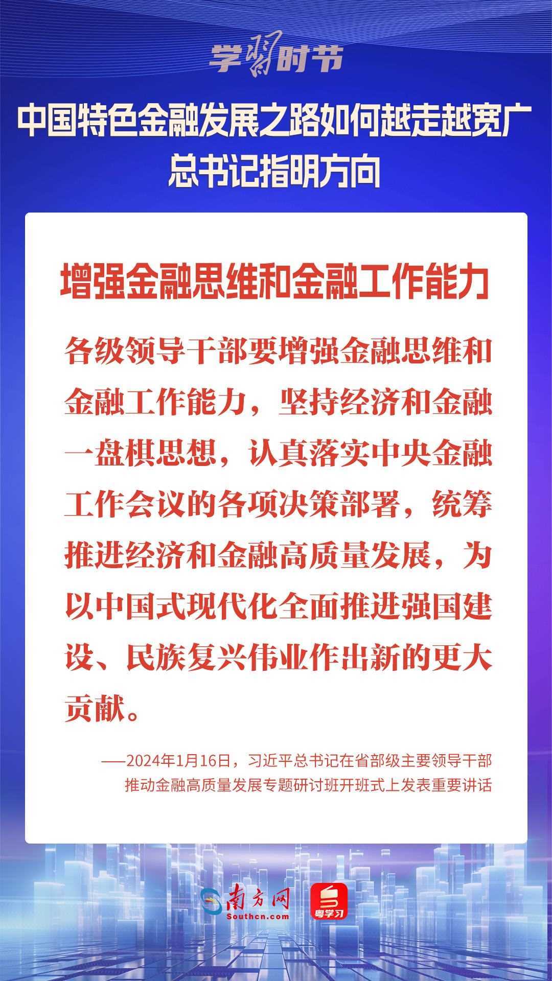 1月16日,中共中央總書記、國家主席、中央軍委主席習(xí)近平在省部級(jí)主要領(lǐng)導(dǎo)干部推動(dòng)金融高質(zhì)量發(fā)展專題研討班開班式上發(fā)表重要講話,為中國特色金融發(fā)展之路指明方向。