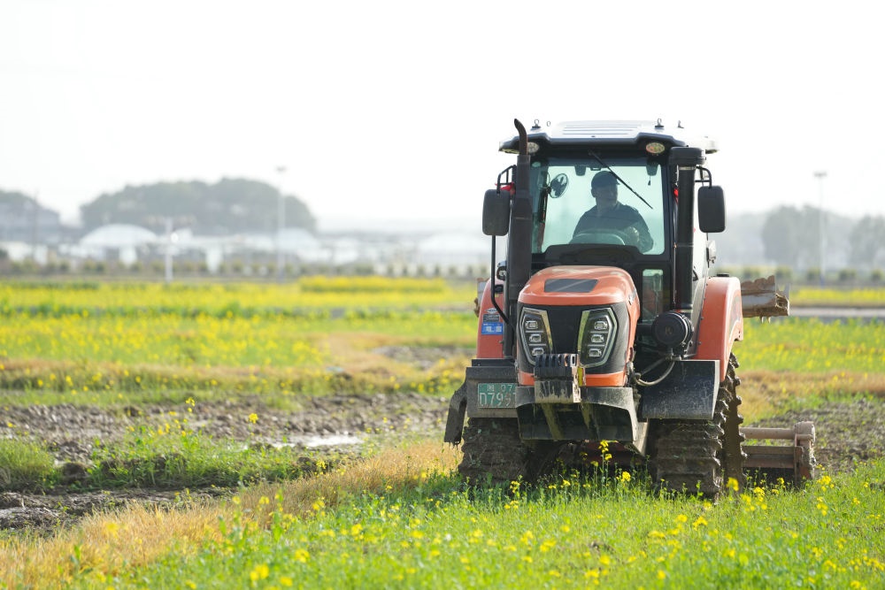 ??3月19日,在港中坪村,村民駕駛農(nóng)機(jī)翻耕田地。