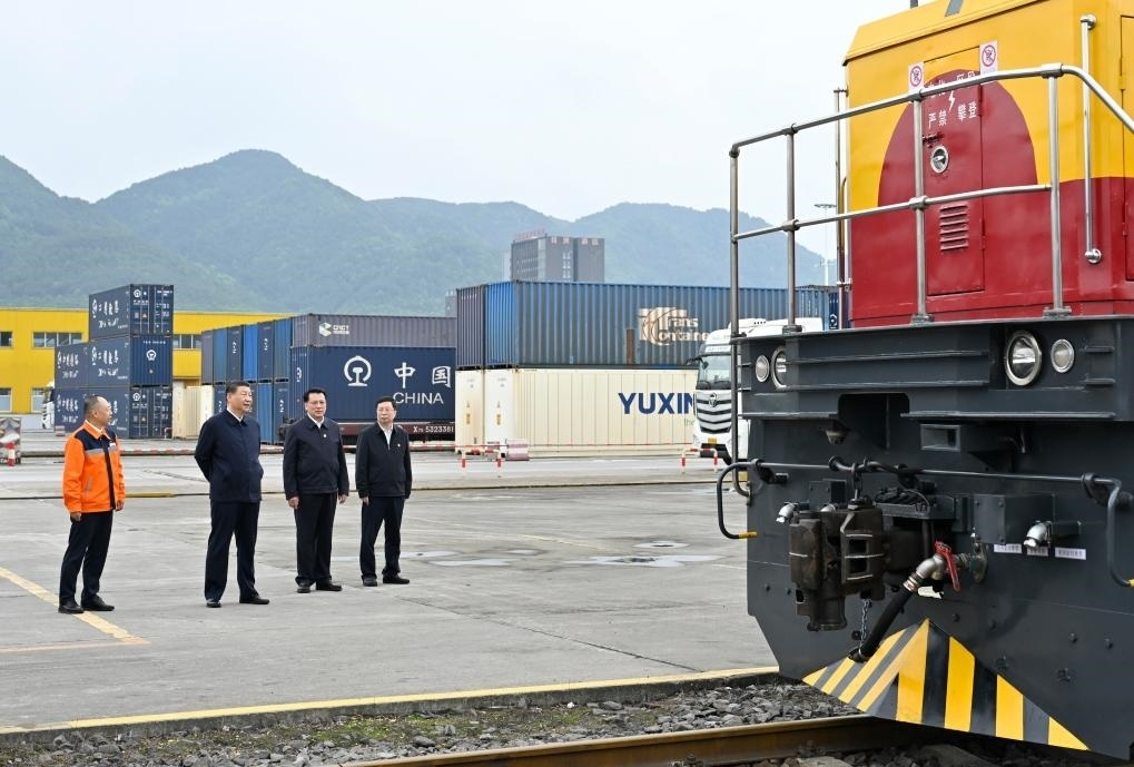 4月22日至23日,習(xí)近平總書記在重慶市考察調(diào)研。他來(lái)到重慶國(guó)際物流樞紐園區(qū),了解當(dāng)?shù)丶涌旖ㄔO(shè)西部陸海新通道等情況。