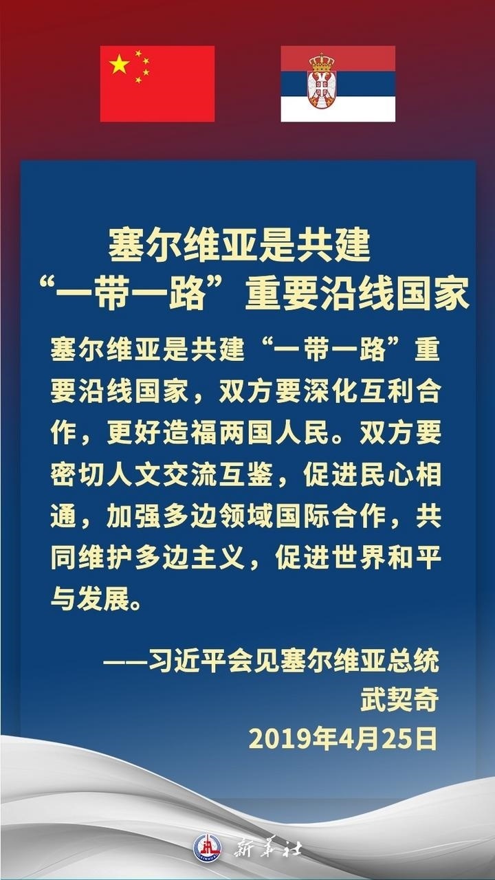 塞爾維亞是中國在中東歐地區(qū)首個全面戰(zhàn)略伙伴。近年來,在習(xí)近平主席和武契奇總統(tǒng)戰(zhàn)略引領(lǐng)下,中塞關(guān)系保持高水平運行,雙方堅定支持彼此核心利益和重大關(guān)切,兩國政治互信牢固,高質(zhì)量共建“一帶一路”取得豐碩成果,在多邊領(lǐng)域協(xié)調(diào)緊密。習(xí)近平主席多次在重要場合提及,中國和塞爾維亞是“鐵桿朋友”。