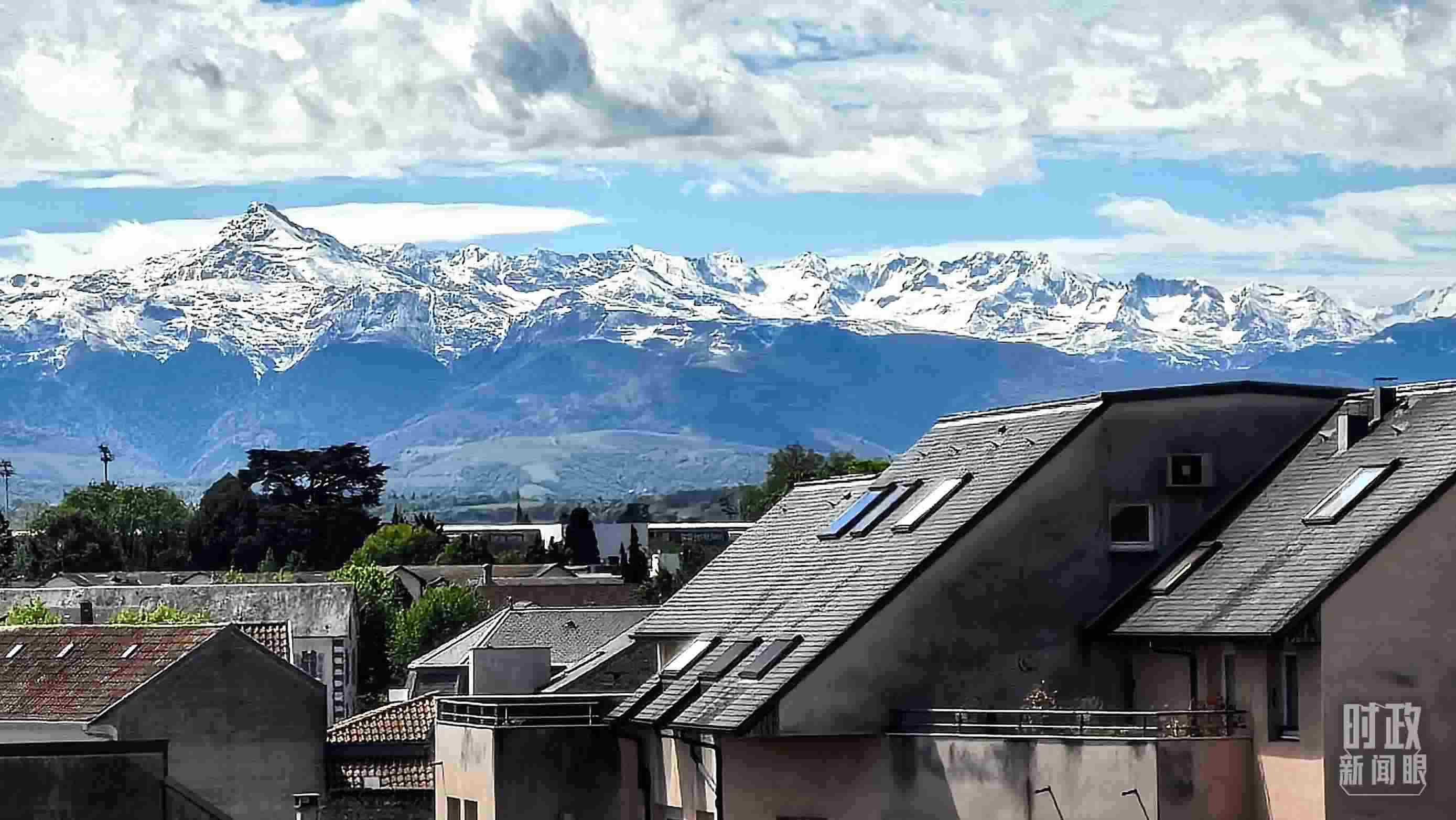△從塔布市區(qū)遠(yuǎn)眺比利牛斯山。(總臺(tái)央視記者楊波拍攝)