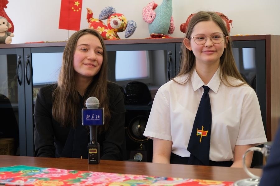 2023年2月7日,在匈牙利首都布達佩斯,匈中雙語學(xué)校學(xué)生胡靈月(左)和宋智孝接受新華社記者采訪。新華社記者 鄧耀敏 攝