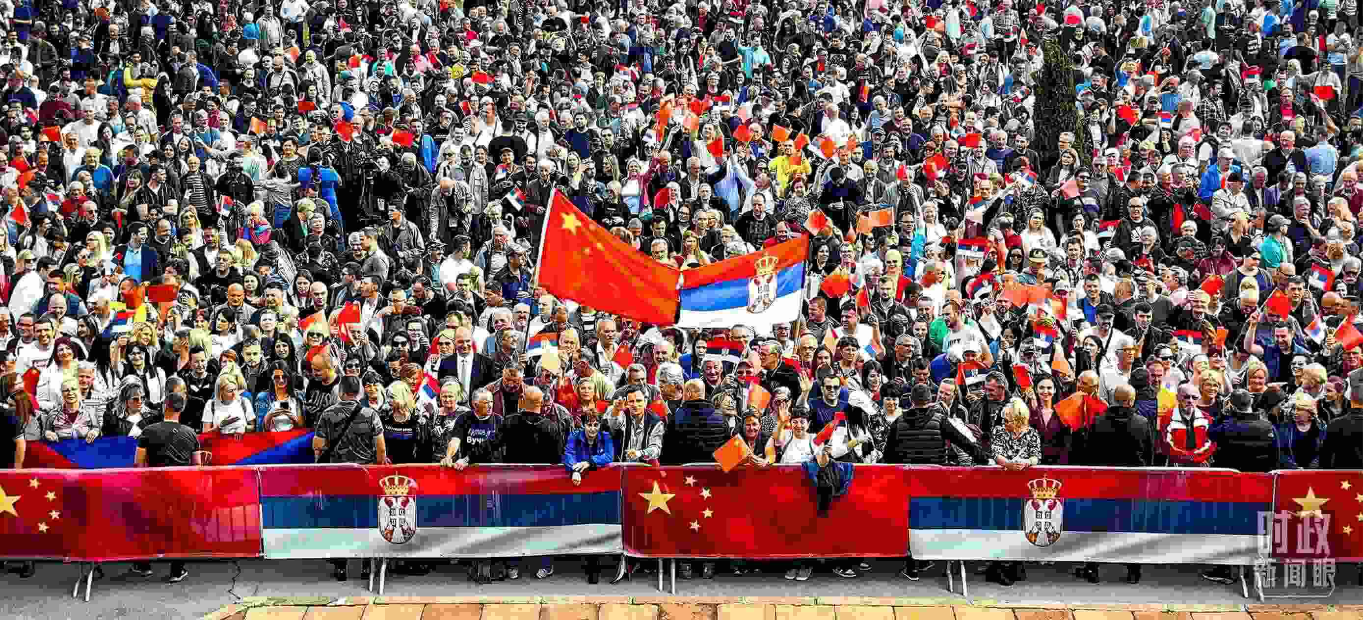 △一萬(wàn)五千名塞爾維亞民眾齊聚塞爾維亞大廈廣場(chǎng),熱烈歡迎習(xí)主席到訪。(總臺(tái)央視記者段德文拍攝)