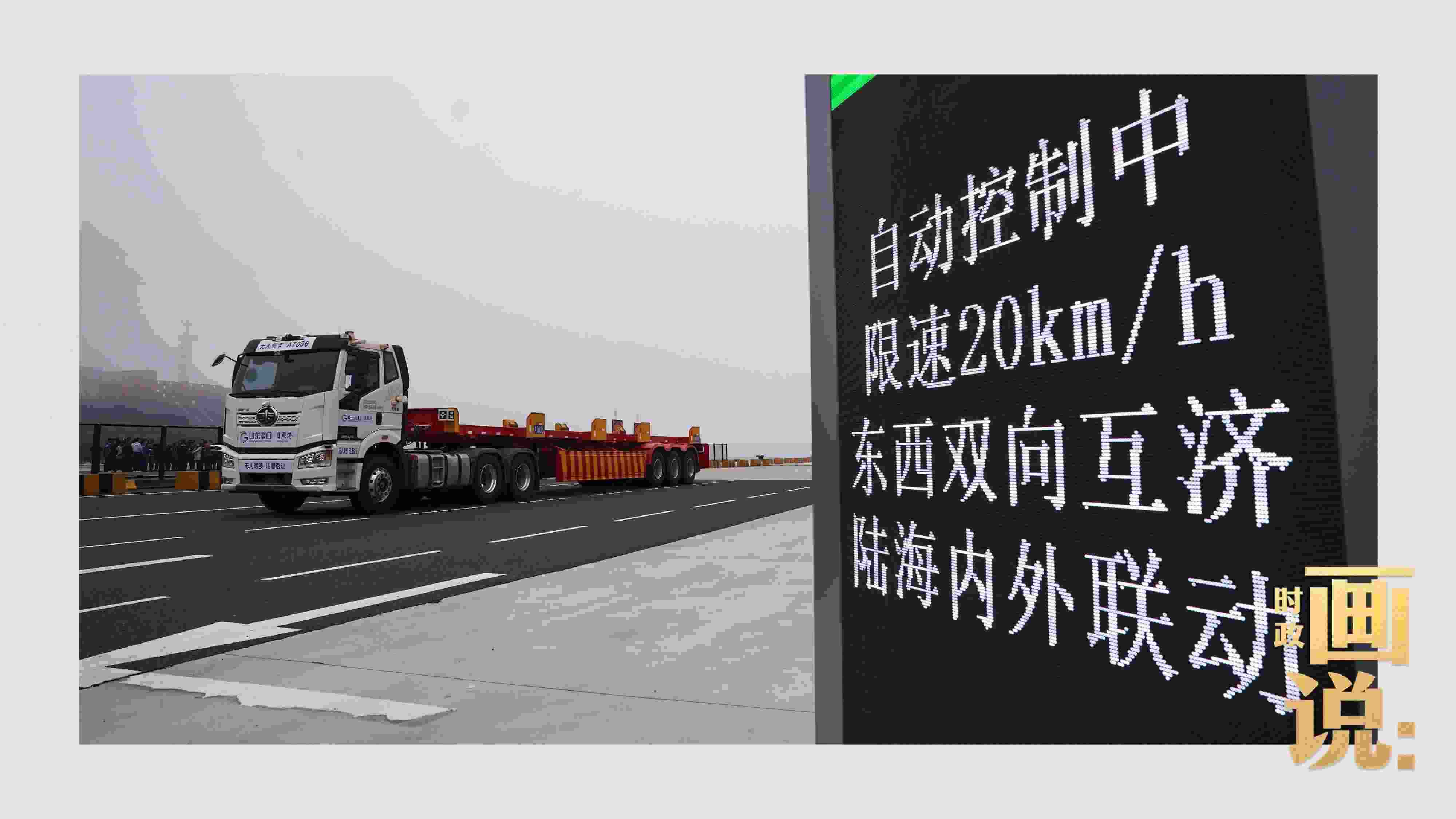 △山東港口集團(tuán)日照港順岸開放式全自動化集裝箱碼頭,無人集卡車在運(yùn)送集裝箱。
