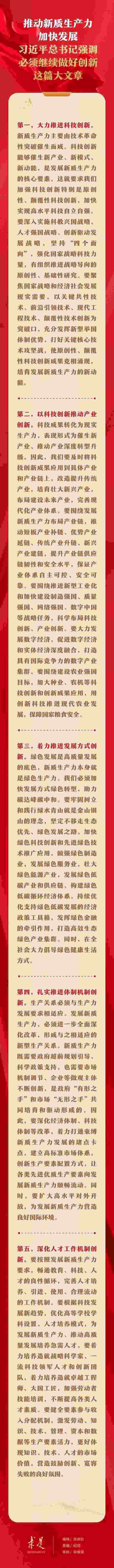 “新質(zhì)生產(chǎn)力的顯著特點(diǎn)是創(chuàng)新,既包括技術(shù)和業(yè)態(tài)模式層面的創(chuàng)新,也包括管理和制度層面的創(chuàng)新。必須繼續(xù)做好創(chuàng)新這篇大文章,推動(dòng)新質(zhì)生產(chǎn)力加快發(fā)展。”