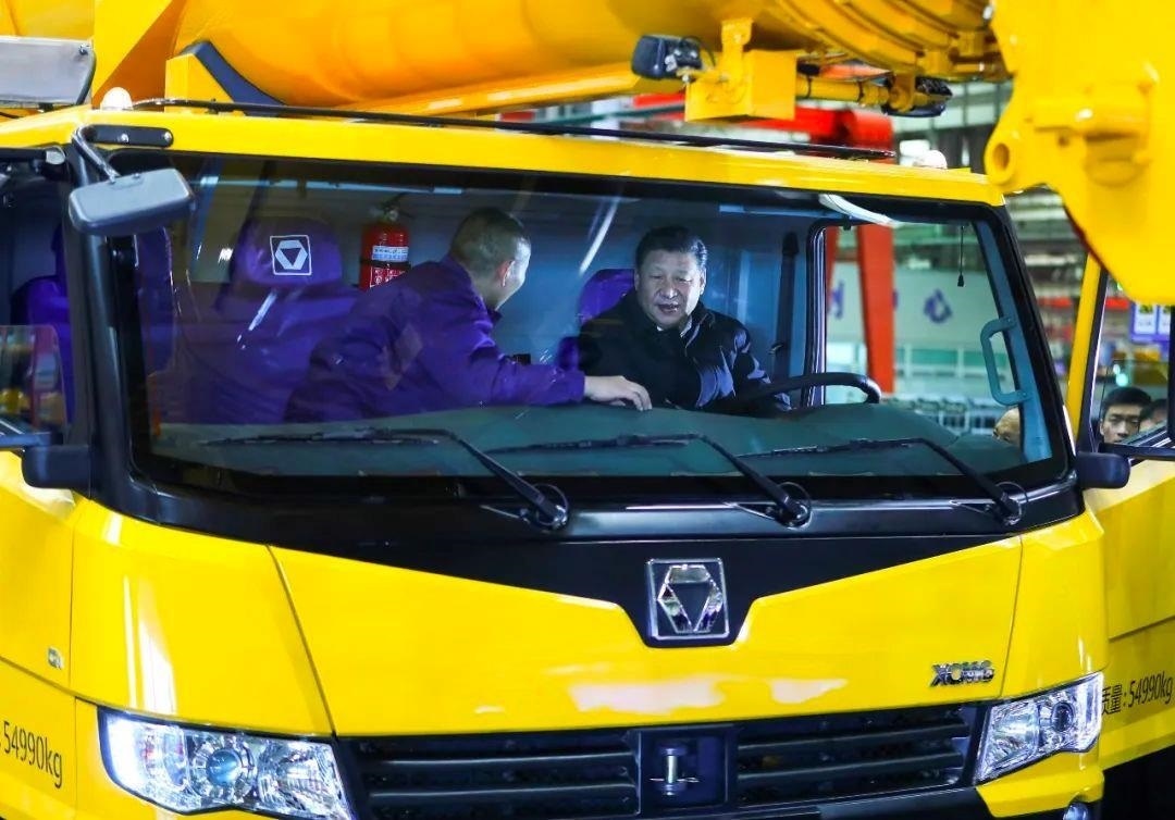 △2017年12月12日,習(xí)近平總書記在江蘇徐州徐工集團坐進剛下線的XCA220型全地面起重機駕駛室,向技術(shù)人員詳細詢問起重機的性能、產(chǎn)量、價格等。