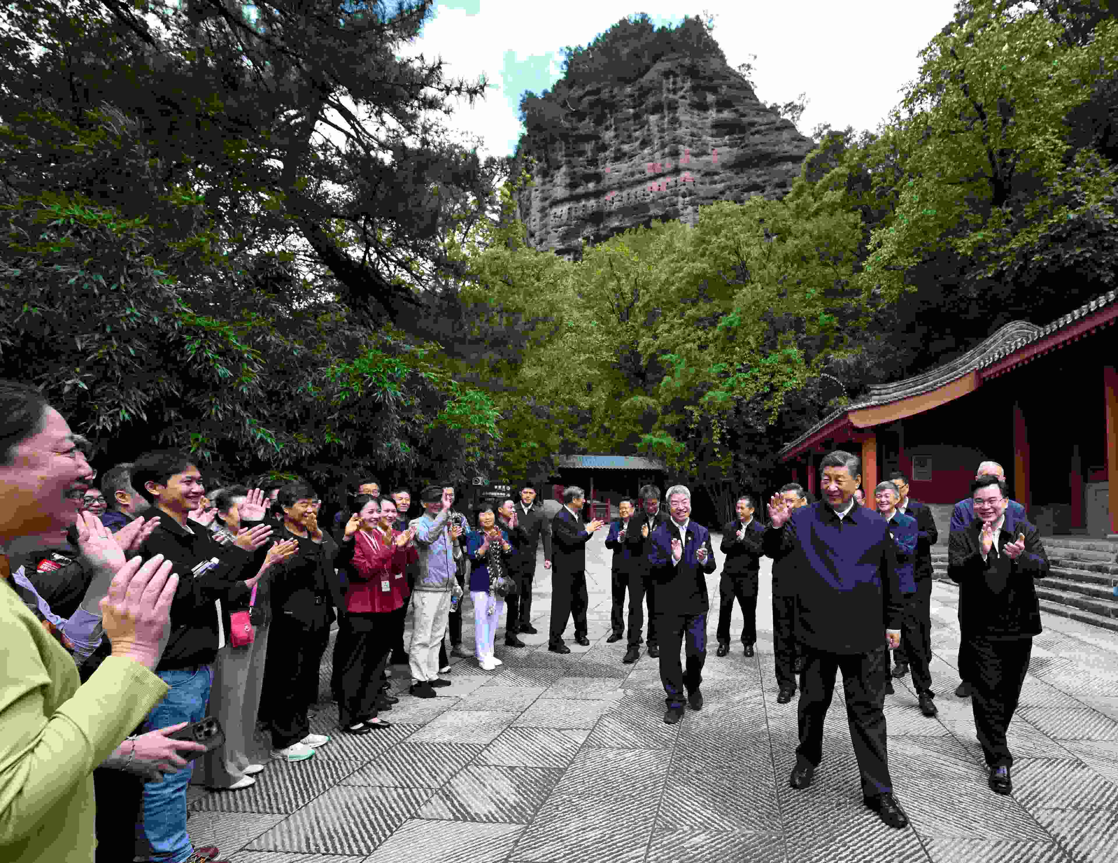 10日下午至11日上午,習(xí)近平總書記先后來到陜西省寶雞市和甘肅省天水市考察調(diào)研。在寶雞市,習(xí)近平考察了寶雞青銅器博物院、渭河生態(tài)公園,了解當(dāng)?shù)丶訌?qiáng)文物保護(hù)利用和開展渭河生態(tài)保護(hù)治理等情況。在天水市,習(xí)近平考察了伏羲廟、麥積區(qū)南山花牛蘋果基地、麥積山石窟,了解當(dāng)?shù)赝苿?dòng)文化遺產(chǎn)保護(hù)傳承、發(fā)展特色現(xiàn)代山地果業(yè)等情況。