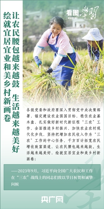 民族要復興,鄉(xiāng)村必振興。黨的十八大以來,每到各地考察調(diào)研,習近平總書記總會去農(nóng)村看一看,走進田間地頭,和農(nóng)民拉拉家常。總書記強調(diào),“建設宜居宜業(yè)和美鄉(xiāng)村是農(nóng)業(yè)強國的應有之義”,“要讓農(nóng)民腰包越來越鼓、生活越來越美好”。