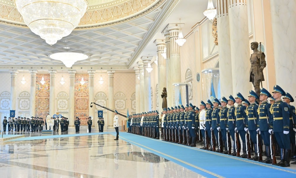 當(dāng)?shù)貢r(shí)間3日,國(guó)家主席習(xí)近平在阿斯塔納出席哈薩克斯坦總統(tǒng)托卡耶夫舉行的歡迎儀式。