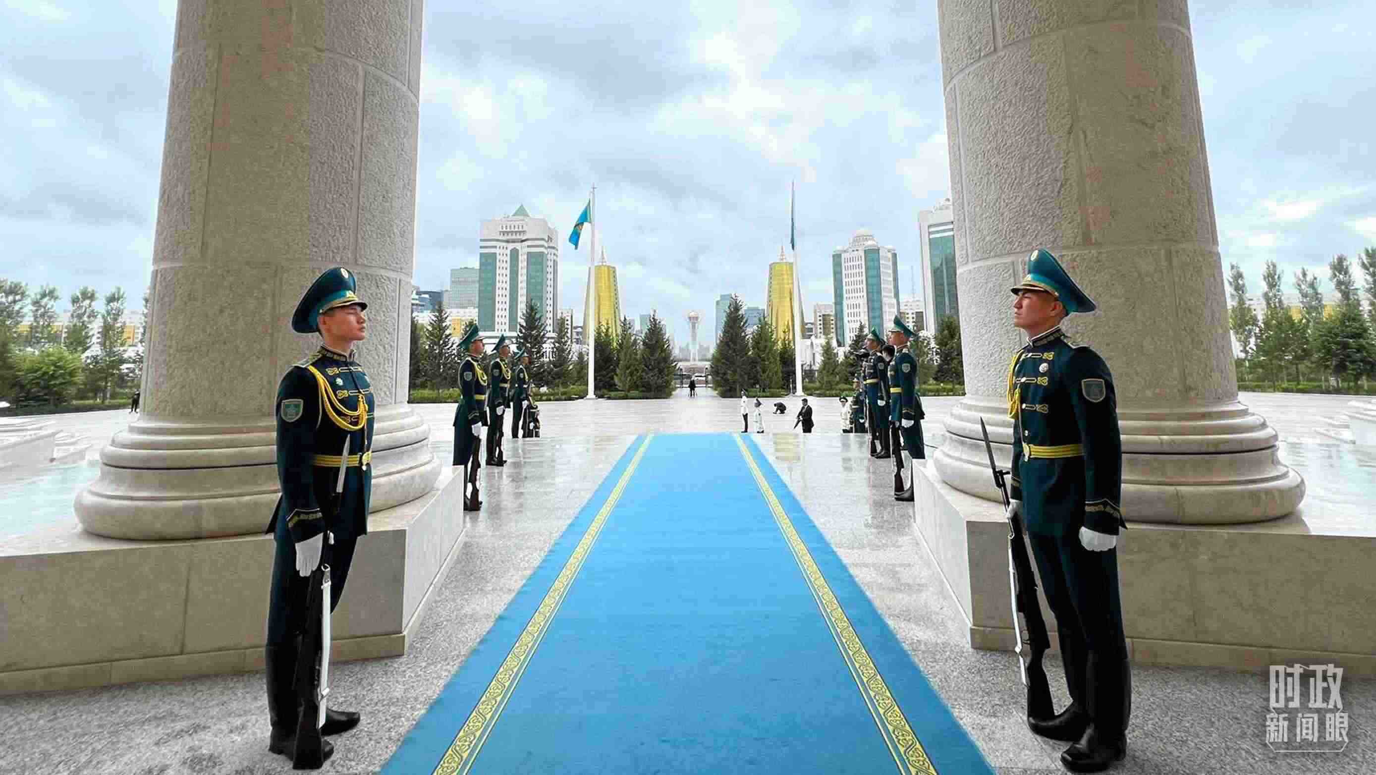 △哈薩克斯坦以最高禮儀歡迎習(xí)近平主席。(總臺央視記者張洛嘉拍攝)
