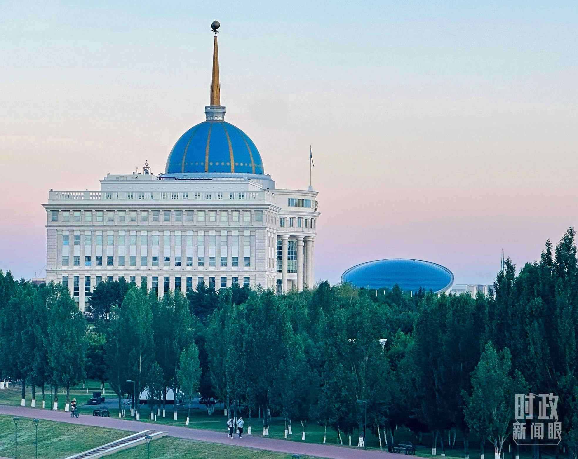 △哈薩克斯坦總統(tǒng)府。(總臺央視記者范一鳴拍攝)
