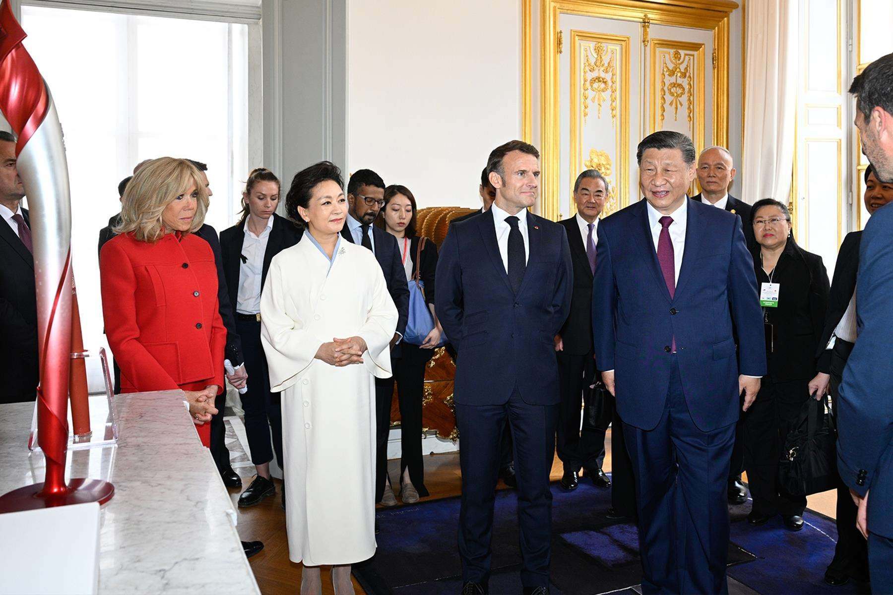 5月6日,愛麗舍宮一層肖像廳,正在法國進行國事訪問的習(xí)近平主席贈送給馬克龍總統(tǒng)北京雙奧火炬,馬克龍總統(tǒng)則以巴黎奧運火炬回贈。習(xí)近平主席微笑著說:“法國是一個體育強國,我衷心祝愿巴黎奧運會取得成功。中方將派出高水平代表團赴法參賽?!?/p>