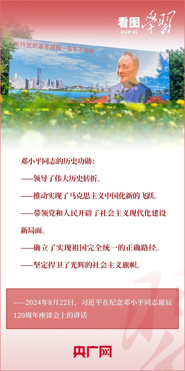 8月22日,習(xí)近平總書記在紀(jì)念鄧小平同志誕辰120周年座談會(huì)上發(fā)表重要講話指出,鄧小平同志的歷史功勛是全方位的、開創(chuàng)性的,對中國和世界的影響是深刻的、長遠(yuǎn)的??倳洀?qiáng)調(diào),對鄧小平同志最好的紀(jì)念,就是把他開創(chuàng)的中國特色社會(huì)主義事業(yè)繼續(xù)推向前進(jìn)。我們要緊緊圍繞以中國式現(xiàn)代化全面推進(jìn)強(qiáng)國建設(shè)、民族復(fù)興偉業(yè)這個(gè)中心任務(wù),繼往開來,奮發(fā)進(jìn)取。一起來學(xué)習(xí)!