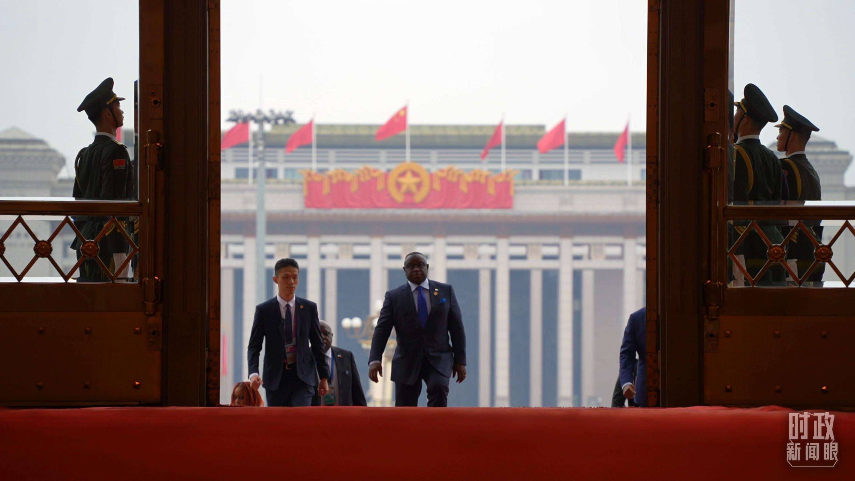 △非洲國家領(lǐng)導人步入人民大會堂。(總臺央視記者趙怡彬拍攝)
