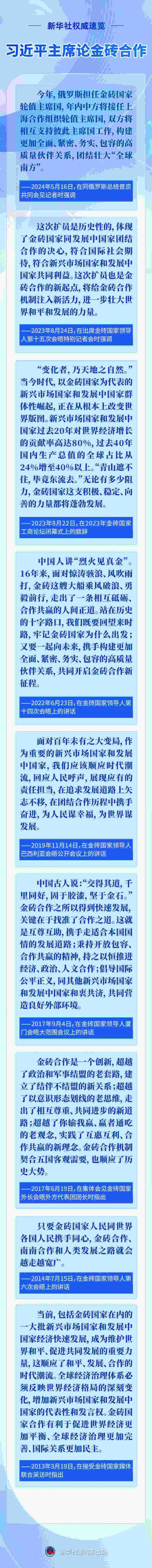 應俄羅斯聯(lián)邦總統(tǒng)普京邀請,國家主席習近平將于10月22日至24日赴俄羅斯喀山出席金磚國家領(lǐng)導人第十六次會晤。今年是“大金磚合作”開局之年,此次會晤是金磚擴員后首次舉行,國際社會廣泛關(guān)注。近年來,習近平主席圍繞金磚合作作出一系列重要論述,一起重溫——