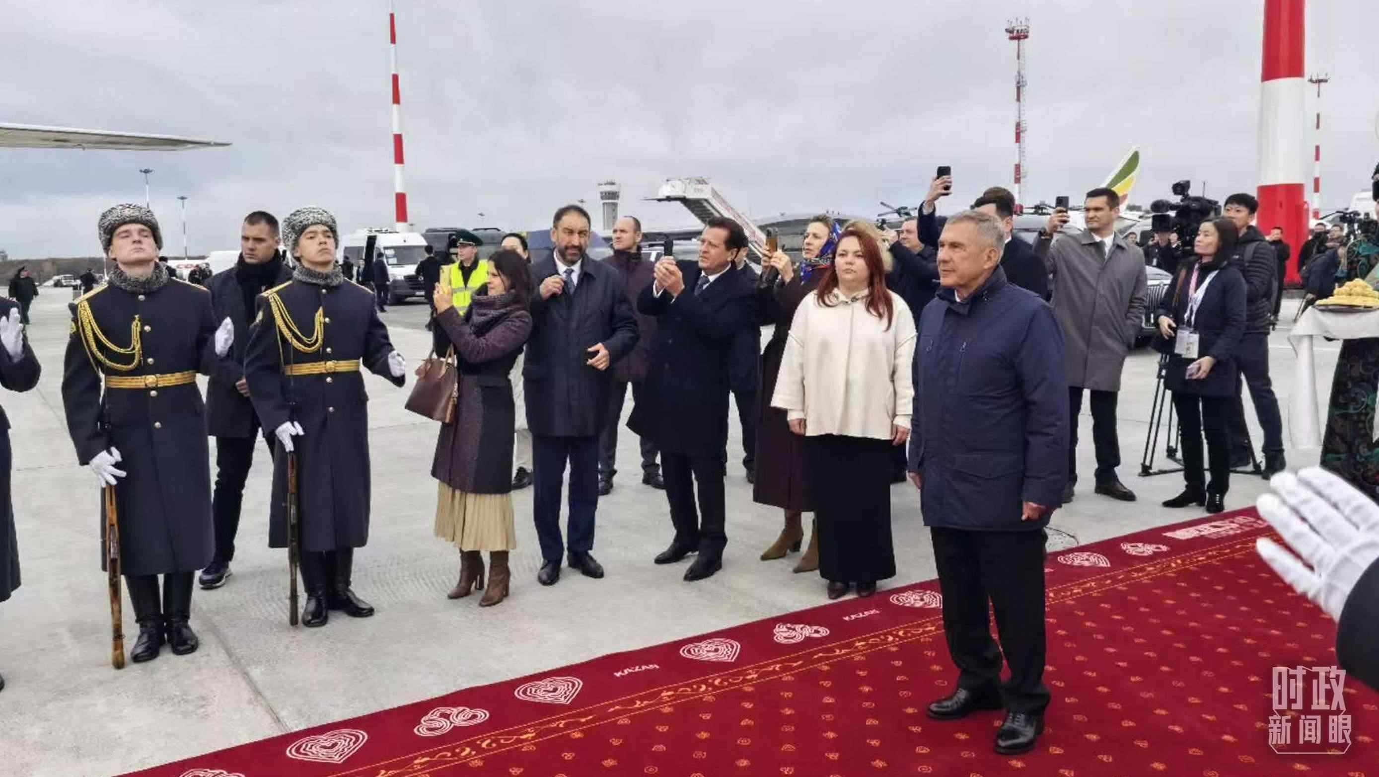 △ 習(xí)主席專機抵達喀山國際機場時,俄羅斯聯(lián)邦韃靼斯坦共和國行政長官等在機場熱情迎接。(總臺央視記者王鵬飛拍攝)