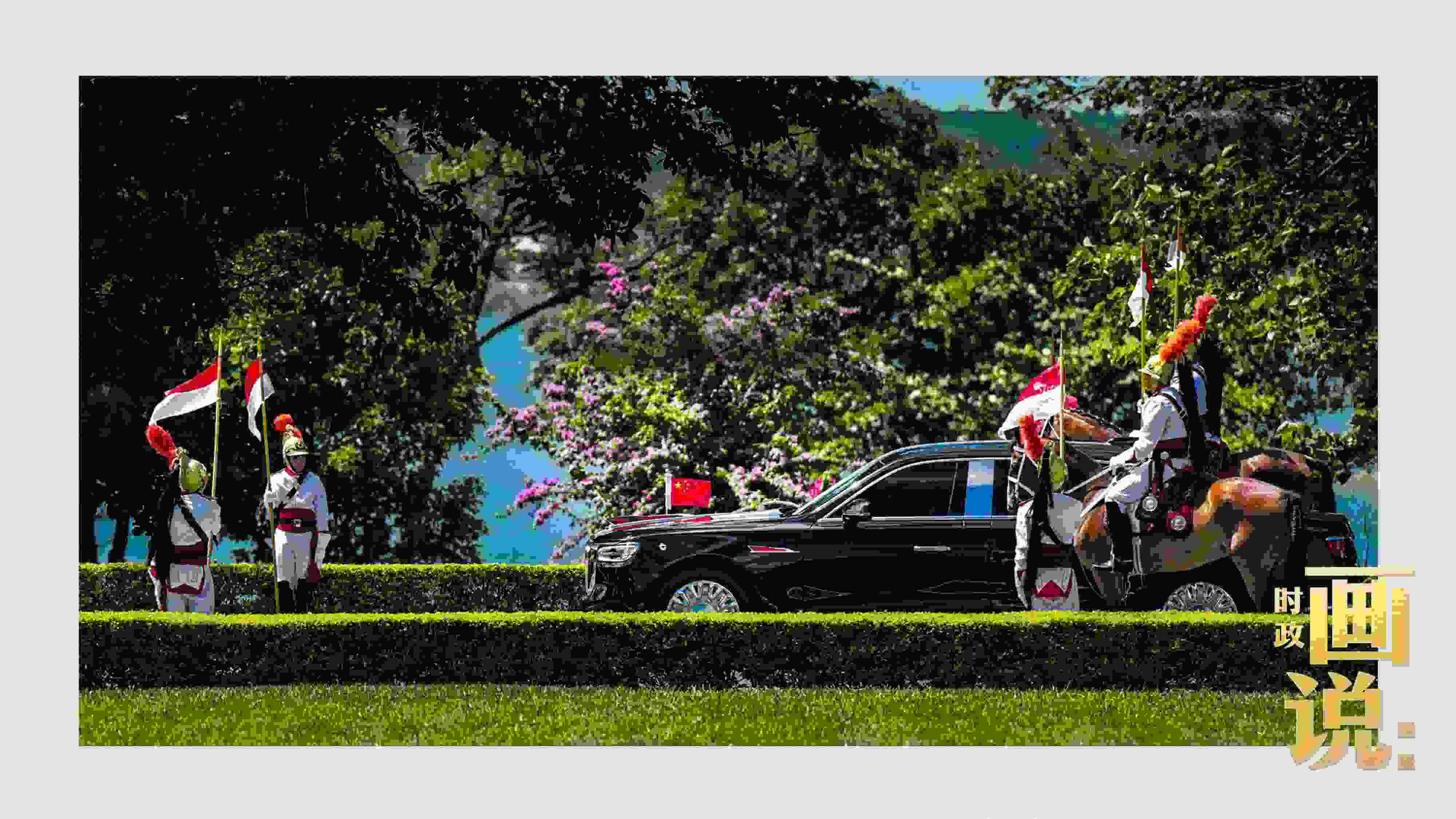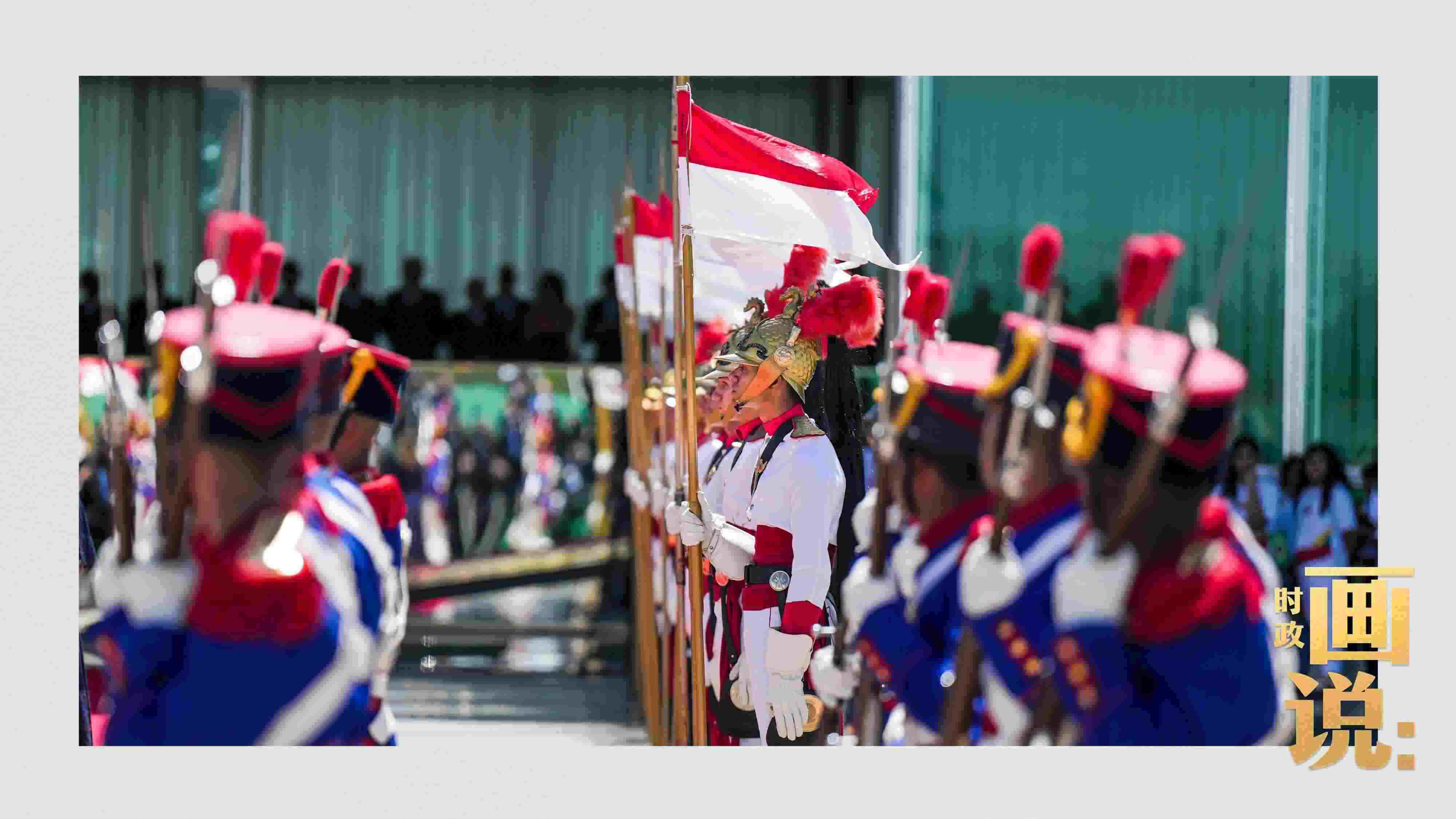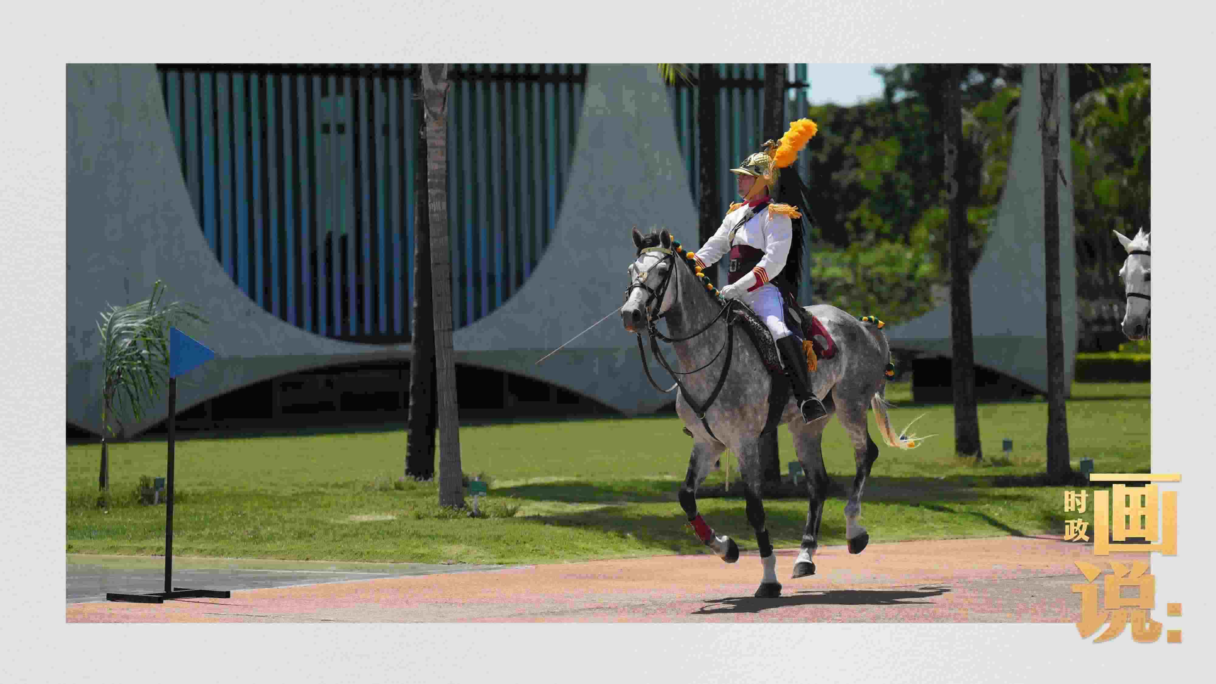 騎兵護(hù)衛(wèi)習(xí)近平主席專車(chē)抵達(dá)儀式現(xiàn)場(chǎng),巴西藝術(shù)家用中文深情唱響中國(guó)經(jīng)典民歌《我的祖國(guó)》,現(xiàn)場(chǎng)氣氛隆重?zé)崃摇?/p>