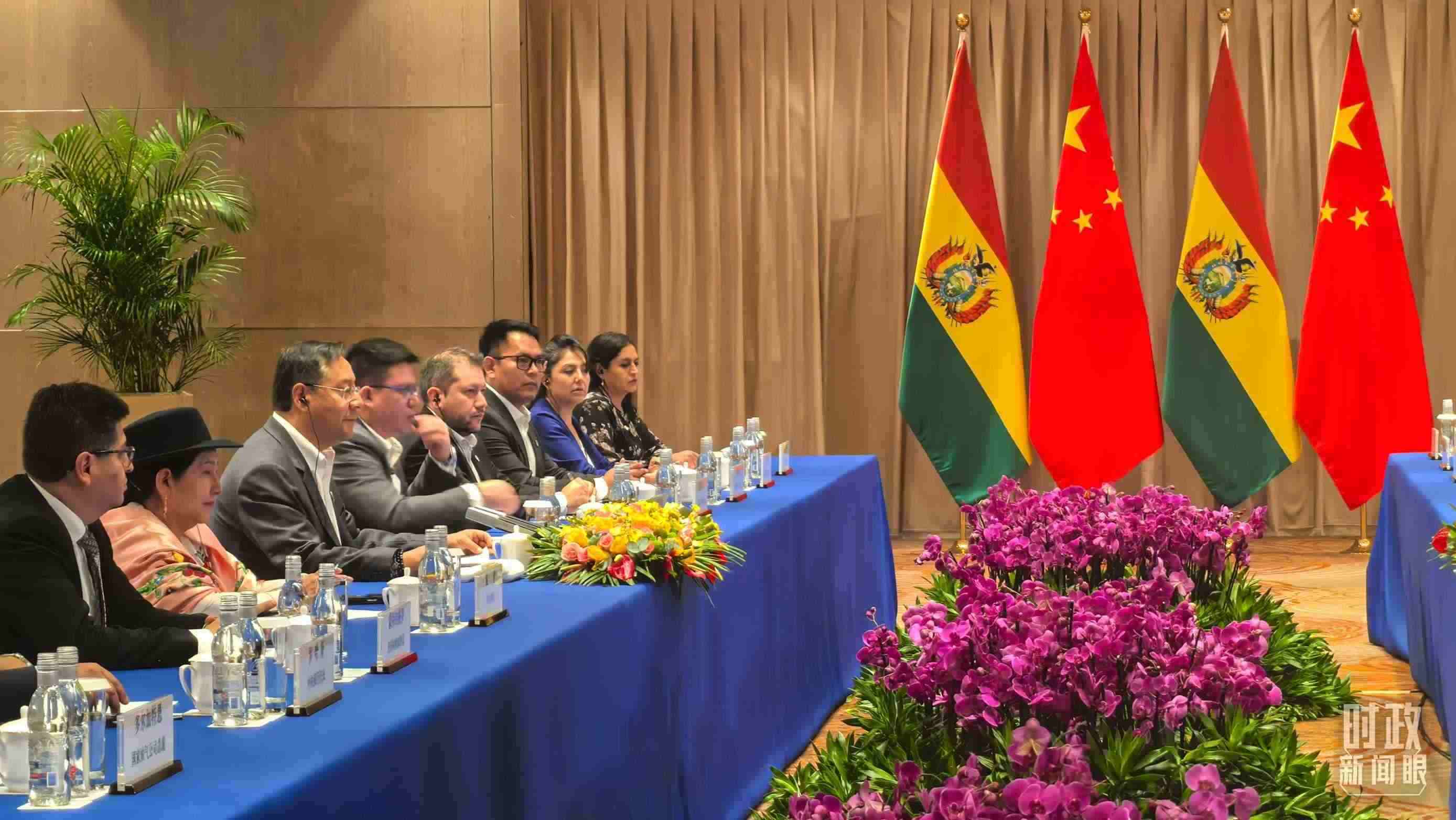 △習主席會見玻利維亞總統(tǒng)阿爾塞現(xiàn)場。(總臺央廣記者潘毅拍攝)