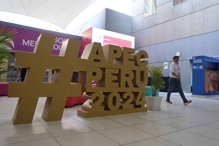 這是11月8日在秘魯利馬拍攝的2024年亞太經(jīng)濟合作組織(APEC)會議標識。新華社記者 許睿 攝