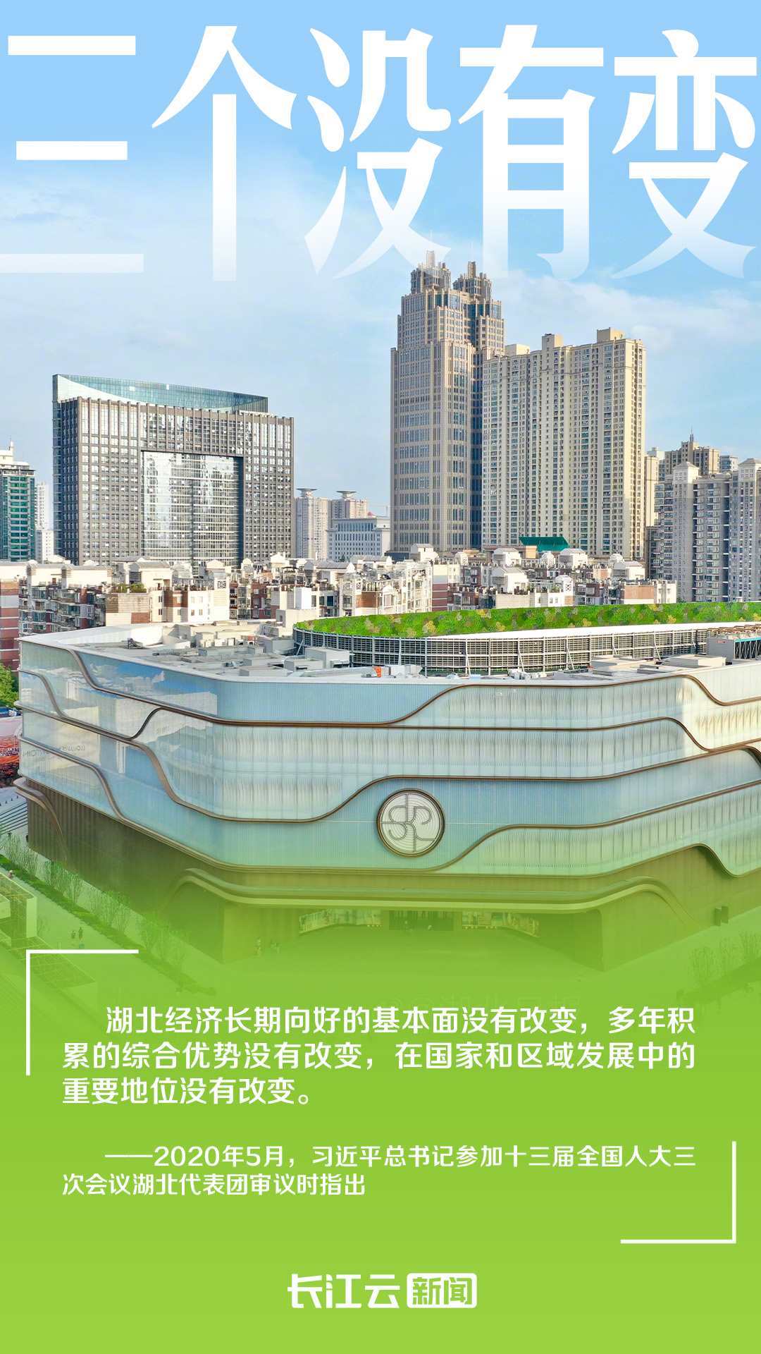 2020年5月,習近平總書記在全國兩會期間參加湖北代表團審議,對湖北提出“三個沒有改變”的重大判斷,再次給湖北加油鼓勁。