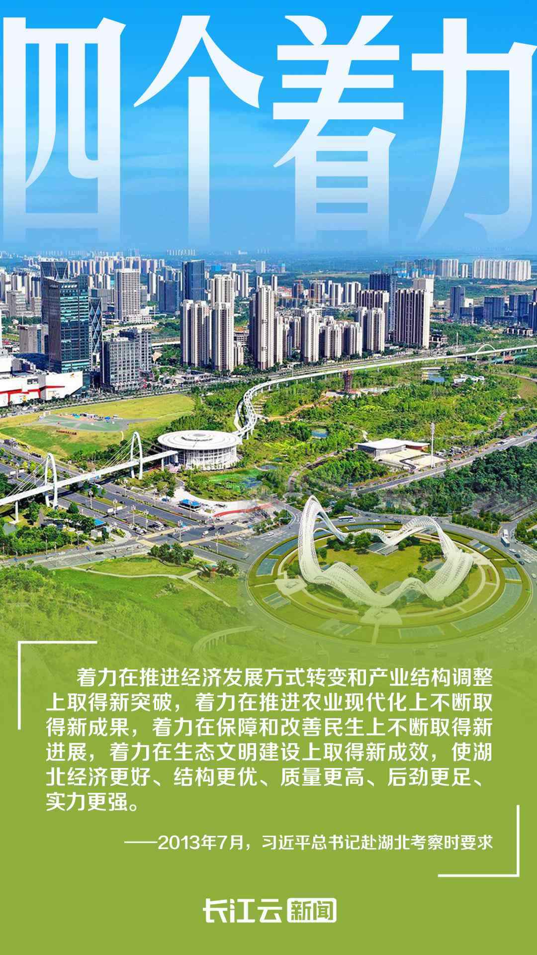 2013年7月,習近平總書記首次考察湖北時提出“四個著力”,要求“努力把湖北建設成為中部地區(qū)崛起重要戰(zhàn)略支點”“爭取在轉變經濟發(fā)展方式上走在全國前列”。