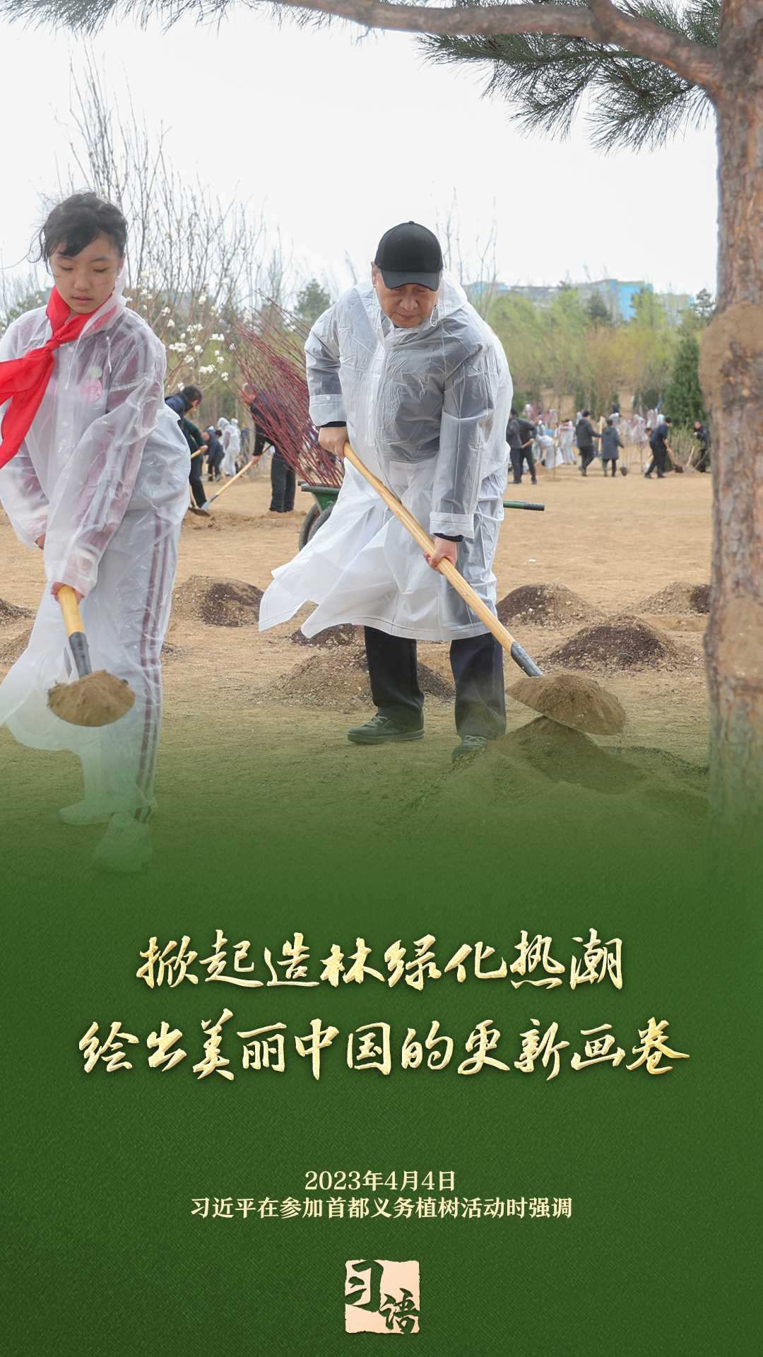 “植樹(shù)造林是一件很有意義的事情,是一項(xiàng)功在當(dāng)代、利在千秋的崇高事業(yè),要一以貫之、持續(xù)做下去。”自2013年以來(lái)的13個(gè)春天里,無(wú)論晴雨,習(xí)近平總書(shū)記都會(huì)拿起鐵鍬,與干部群眾一起參加首都義務(wù)植樹(shù)活動(dòng)。鏟土造坑、培土圍堰、提水澆灌,總書(shū)記身體力行種下綠色的希望,對(duì)擴(kuò)綠興綠護(hù)綠、建設(shè)美麗中國(guó)提出明確要求。一起學(xué)習(xí)。