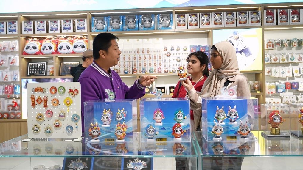在第一站北京,她已給阿聯(lián)酋的親友準(zhǔn)備了不少禮物:中華美景冰箱貼、中式小帽子、大熊貓鑰匙扣、印有長(zhǎng)城圖案的杯子和紀(jì)念幣……在北京奧運(yùn)博物館紀(jì)念品商店,她頭一次接觸中國(guó)潮玩,對(duì)憨態(tài)可掬的盲盒玩偶“龍墩墩”愛不釋手。