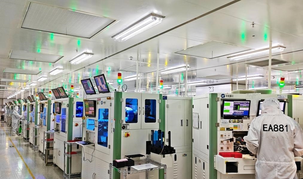 走進(jìn)重慶市天實精工科技有限公司無塵車間,智能機(jī)器人有條不紊地將芯片送上生產(chǎn)線,經(jīng)過自動清洗、表面貼裝、芯片封裝、鏡頭裝聯(lián)等工序,一顆顆攝像頭模組就此誕生。