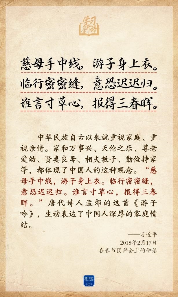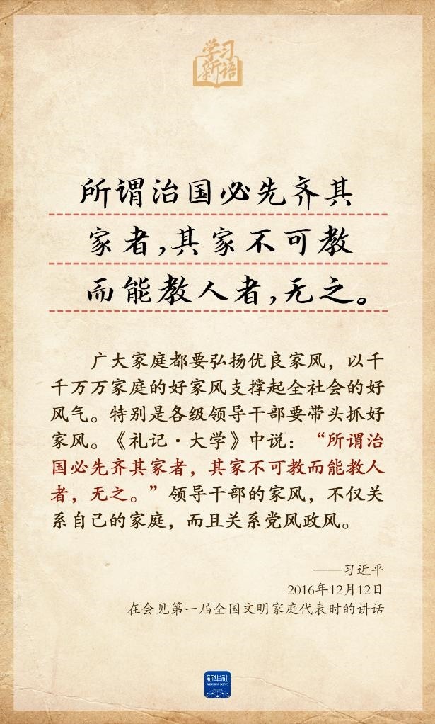 家風是社會風氣的重要組成部分。習近平總書記始終重視家庭、家教、家風建設,多次在重要場合引經(jīng)據(jù)典話家風。5月15日是國際家庭日,我們選取總書記相關重要論述,品讀其中深意。