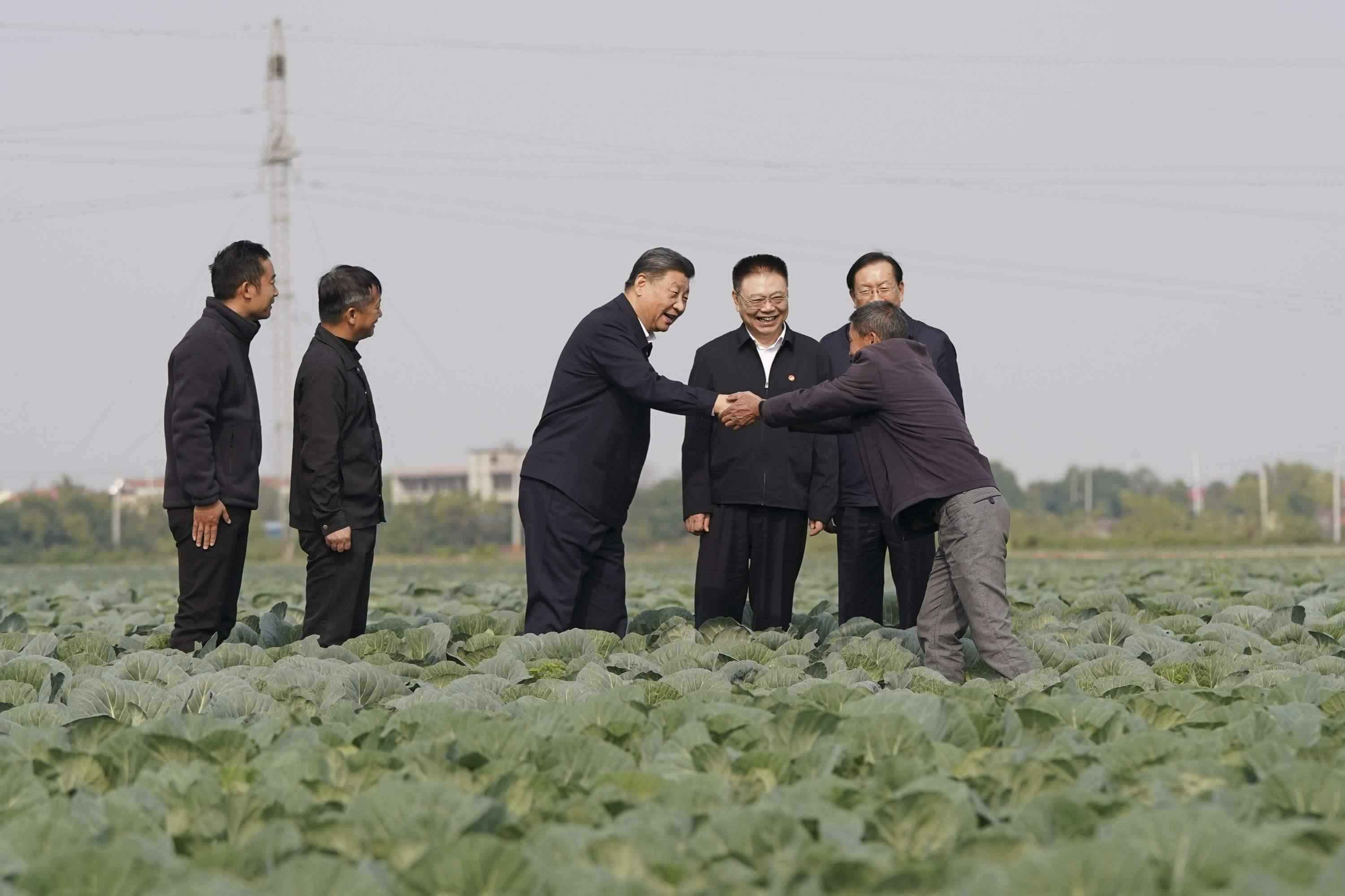 2025年11月7日至8日,中共中央總書記、國家主席、中央軍委主席習近平在廣東考察。這是7日下午,習近平在梅州市梅縣區(qū)雁洋鎮(zhèn)南福金柚種植基地考察。新華社發(fā) 肖翊/攝