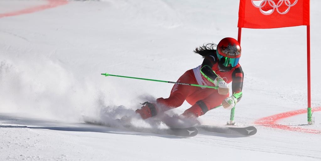 2月20日,中國隊(duì)選手孔凡影在北京冬奧會(huì)高山滑雪混合團(tuán)體項(xiàng)目比賽中。新華社記者陳斌攝