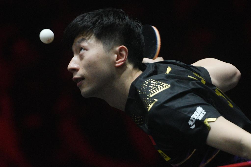 3月17日,馬龍在比賽中發(fā)球。新華社發(fā) (鄧智煒攝)