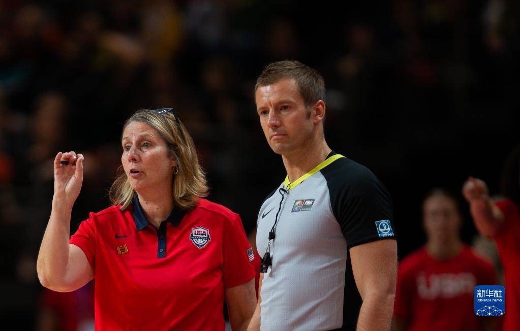 10月1日,美國(guó)隊(duì)主教練謝麗爾·里夫(左)在比賽中指揮。