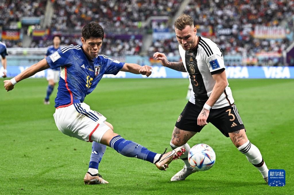 當日,在卡塔爾多哈哈里發(fā)國際體育場進行的2022卡塔爾世界杯足球賽E組比賽中,日本隊以2比1戰(zhàn)勝德國隊。