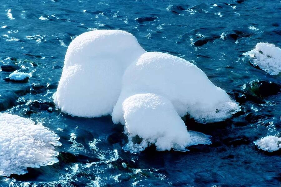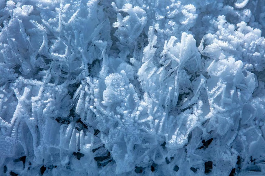 郎立興在爬冰臥雪和踏遍雪原山林與冰雪的“耳鬢廝磨”和艱辛跋涉中,升騰了對于冰雪的情感和認知,破譯了冰雪的情懷和語言,對于冰雪有著獨特的發(fā)現(xiàn)和關乎哲理和生命的深層理解。在他的鏡頭下,那些冰雪展現(xiàn)了大自然的鬼斧神工和神奇造化,具有生命力和藝術感染力,蘊藏著豐富的自然信息和生命信息,傳達和昭示著深刻的寓意。
