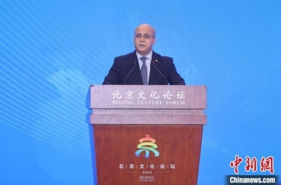 9月15日,約旦駐華大使胡薩姆·侯賽尼在2023北京文化論壇“文明互鑒:相互尊重與合作發(fā)展”平行論壇上發(fā)表演講。 中新社記者 易海菲 攝