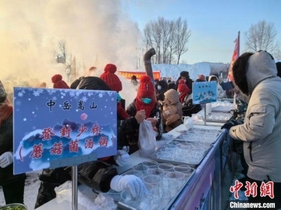 活動(dòng)現(xiàn)場展示的寒地美食是一大亮點(diǎn)。熱氣騰騰的“登封少林”“泰安福祿”“華山論劍”等極具武俠味道的“江湖美食”讓參會(huì)者大飽口福,忘卻了-26℃的寒冷。