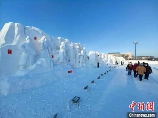 參會(huì)者觀賞神態(tài)逼真的武俠風(fēng)格雪雕作品。姜輝 攝
