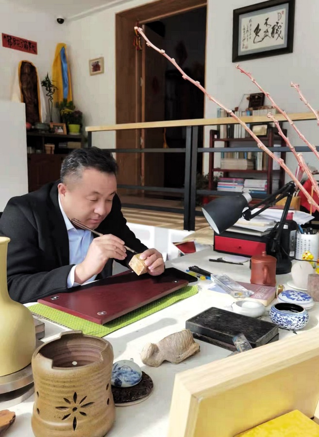 張小方自幼酷愛書法,學(xué)習(xí)之路也很豐富,對楷、行、篆、隸均有涉足,師從多位書法名家,經(jīng)過多年的潛心學(xué)習(xí)和實踐,逐漸形成了自己獨特的藝術(shù)風(fēng)格。然而他與石鼓文的結(jié)緣說來也巧,在蘭州大學(xué)書法研究所學(xué)習(xí)期間,第一次聽了篆刻大家劉洪洋老師的篆書課后,接觸了石鼓文之后再就一發(fā)不可收拾,直至現(xiàn)在一有時間就是臨習(xí)石鼓文,在這個書體上用功最勤,并苦心研習(xí)。在學(xué)習(xí)過程中,他又愛動腦筋,古今對照,靈活思考,以經(jīng)典石鼓文為基礎(chǔ),又融入了現(xiàn)代審美觀念,使其作品不失古樸典雅,又富有時代氣息。