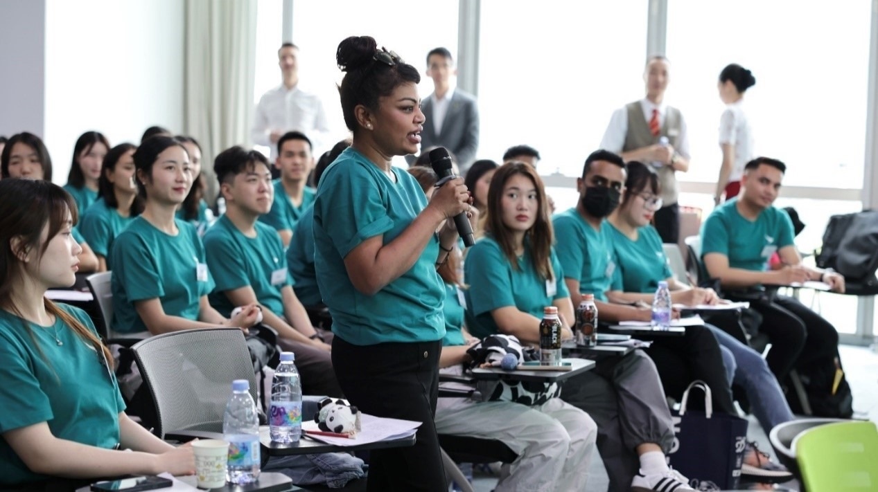 移步至沉浸式展演區(qū),情景演繹與互動(dòng)交流交織,不同時(shí)代青年在勞動(dòng)崗位上的奮斗場(chǎng)景躍然眼前,師生們不再是旁觀者,而是歷史的參與者,真切體悟到奮斗者的熱血與執(zhí)著。