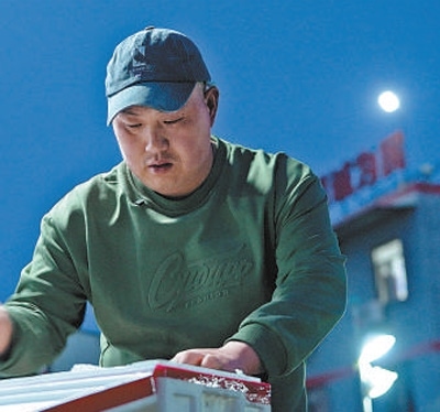 常青川從批發(fā)市場出來,天邊剛露出魚肚白?;氐降昀?,他麻利地把菜碼上貨架。