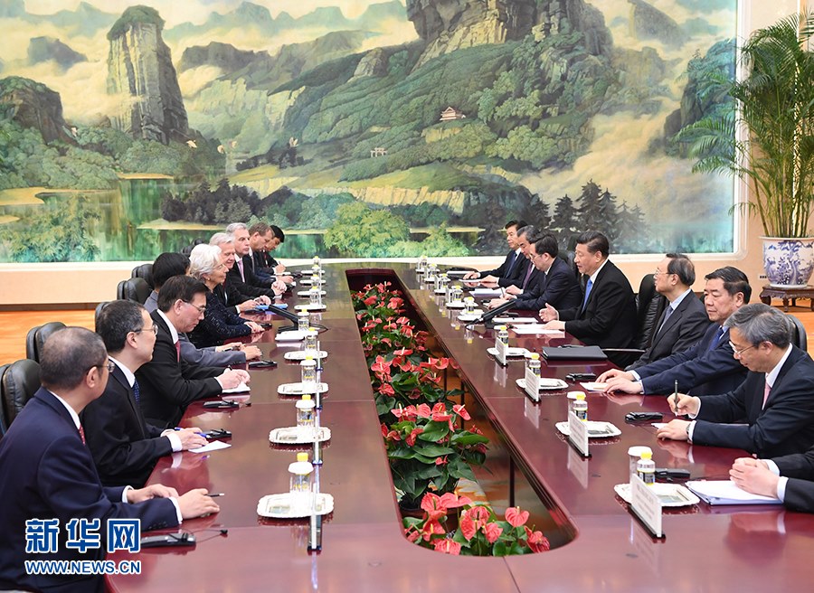 國(guó)家主席習(xí)近平24日在人民大會(huì)堂會(huì)見(jiàn)國(guó)際貨幣基金組織總裁拉加德。